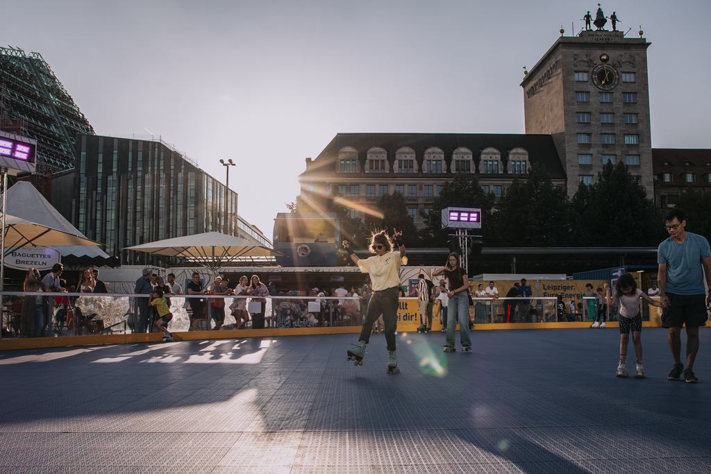 Vom 21. August bis zum 16. September bringt die Bergmann Eventgastronomie nun auch im Sommer eine Erlebniswelt auf den Leipziger Augustusplatz – diesmal auf Rollen. Besucher und Besucherinnen erwartet ein ganz besonderes und sommerliches Freizeitvergnügen mit der größten, runden, mobilen Rollschuhbahn Europas, einer Aussichtsplattform und einem kulinarischen Dorf, das für jeden Geschmack etwas zu bieten hat. Im gemütlichen Lounge-Bereich neben der Bahn können Gäste sich entspannen und das sportliche Treiben bestens beobachten.